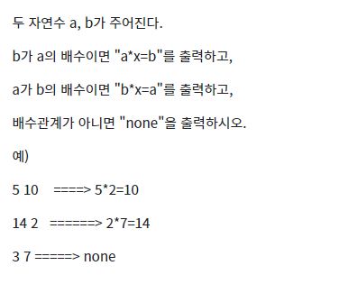 위의 문제 설명을 보고 배수 관계를 출력한다.