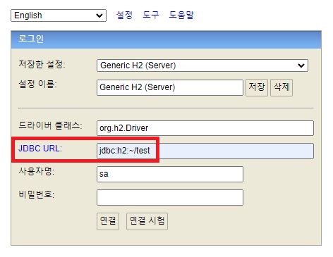 - 기본적인 h2 디폴트 설정에서, 저장한 설정을 나는 Generic H2 (Server)로 바꾸어서